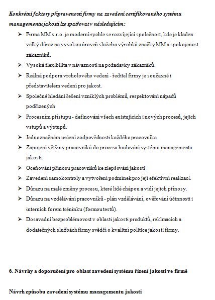 5. Analýza připravenosti firmy MM s.r.o. k zavedení systému řízení jakosti