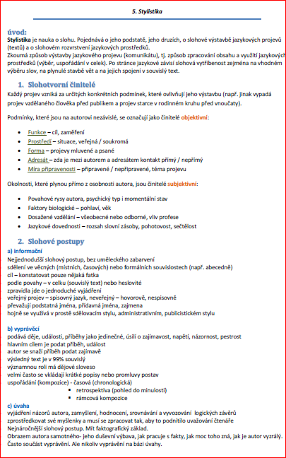 Maturitní otázky, stylistika.