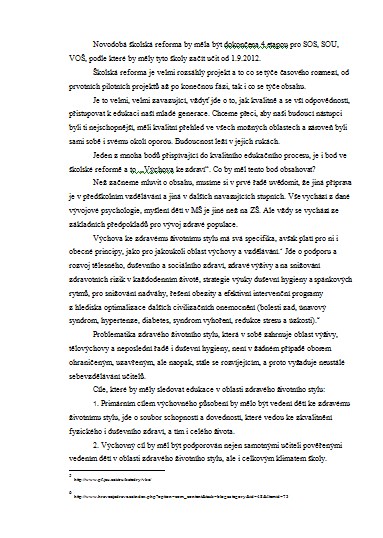 - Školská reforma - o edukaci a zdraví žáků"