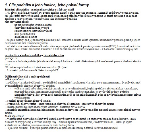 - 1. Cíle podniku a jeho funkce, jeho právní formy
