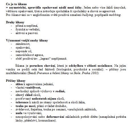 Šikana je poruchou chování, která je odchylkou v oblasti socializace. Na jejím vzniku se podílí celá řad faktorů (biologické, psychické a sociální). - příčiny jsou multifaktoriální (Bendl Prevence a řešení šikany ve škole. Praha 2003)