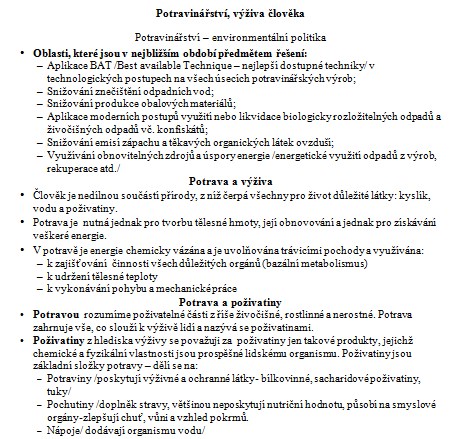 - Aplikace BAT /Best available Technique - nejlepší dostupné techniky/ v technologických postupech na všech úsecích potravinářských výrob;