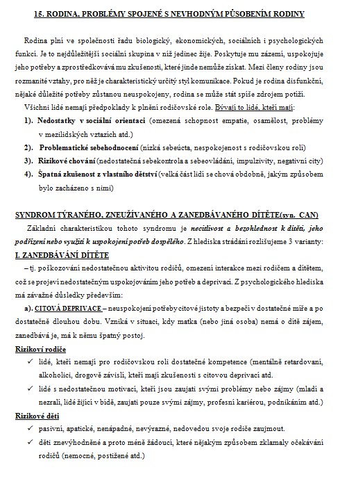 15. Rodina, problémy spojené s nevhodným působením rodiny
