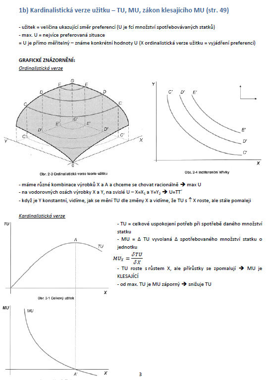 - 1b) Kardinalistická verze užitku - TU, MU, zákon klesajícího MU 3